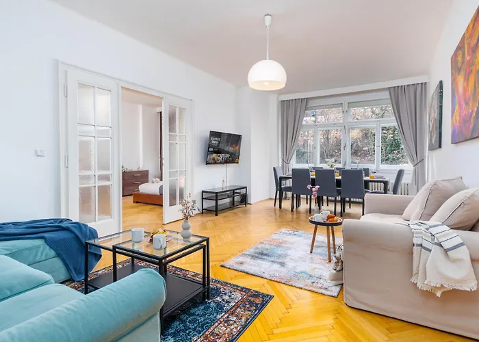 Sobór św. św. Cyryla i Metodego w Pradze znajduje się 25 min spacerem od 1-pokojowego apartamentu. Synagoga Hiszpańska w Pradze też jest blisko, 2 km stąd. Do centrum Pragi można dojść spokojnym krokim w kilka minut. Ściana Johna Lennona znajduje się w zasięgu ręki od apartamentu o powierzchni 139 m².